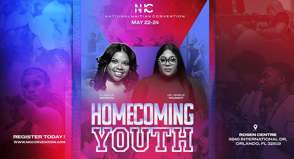 We trust you will maintain an active interest in the National Haitian Convention in the coming year. Furthermore, we count on you to reach our goal of meeting with 3,000 delegates in Orlando, Florida at the Rosen Centre Hotel. Start saving now! Get your registration early. Buy your plane ticket early. Don’t wait until next year. Do everything this year. You may be able to help someone if you take care of yourself and your family this year. We love you and can't wait to see you next year